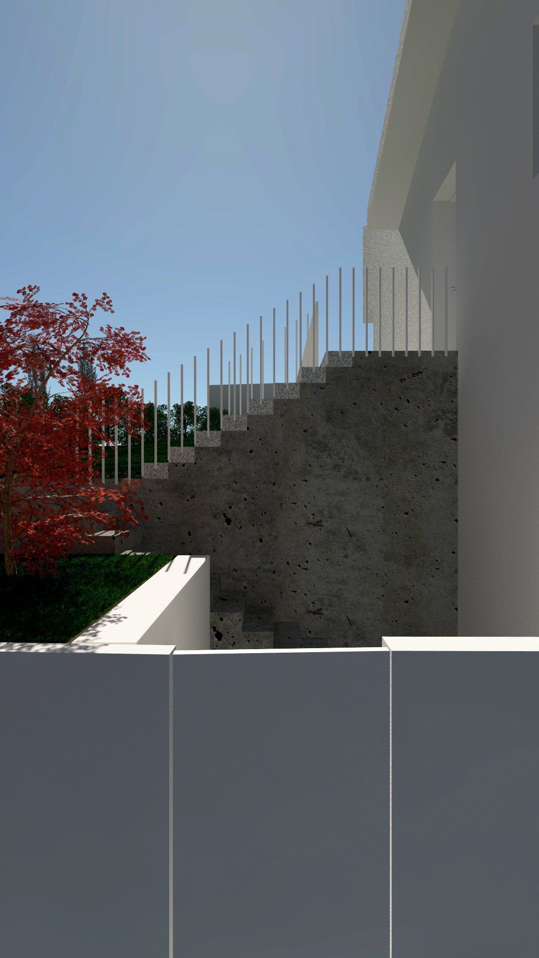 Embora morfologicamente diferente das construções vizinhas, a moradia tem uma escala equilibrada, que respeita a envolvente urbana e procura a uma integração urbana harmónica.