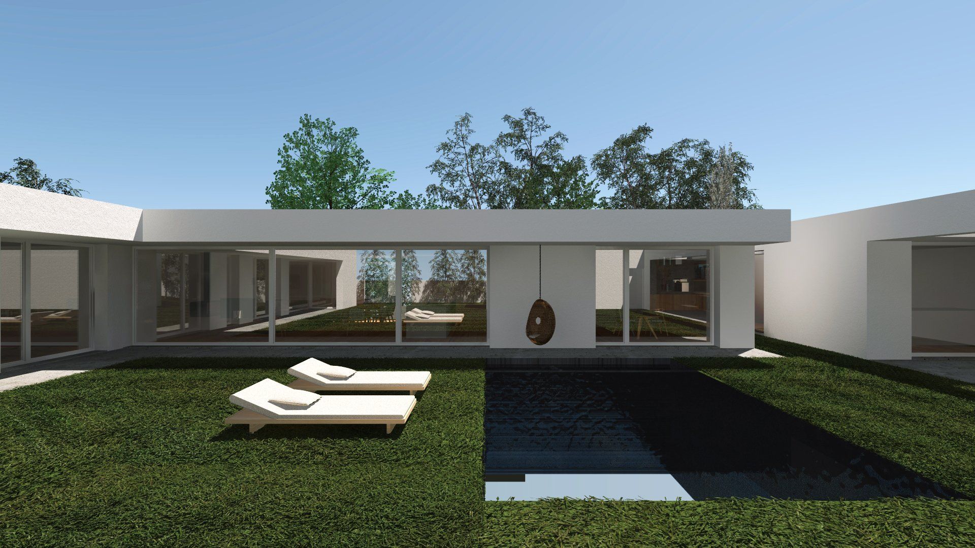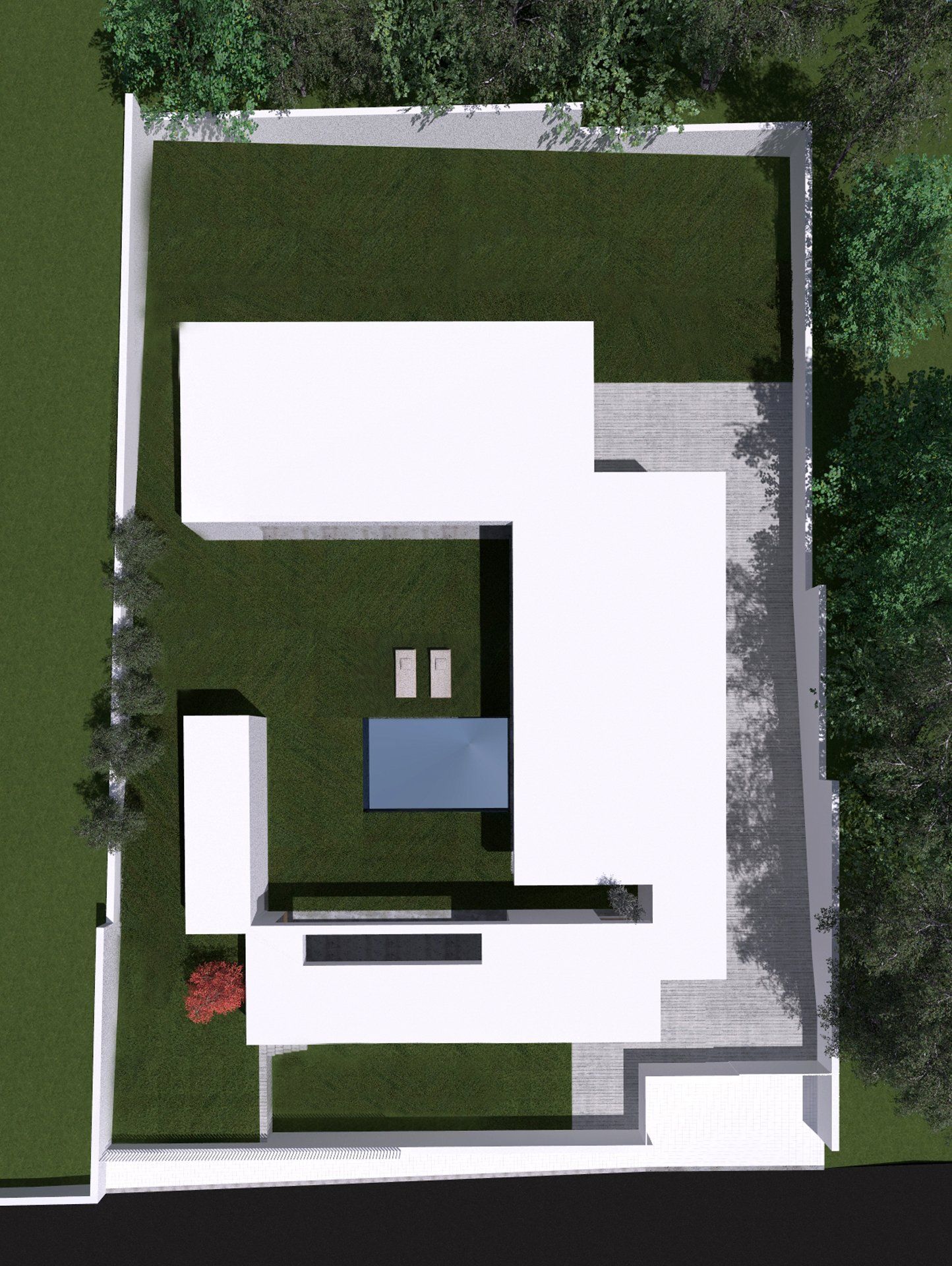 O conceito da casa teve como princípio a criação de um jardim central em torno do qual se organizam os espaços interiores, conferindo-lhes privacidade ao mesmo tempo que potencia a exposição solar. o piso inferior surge como base de suporte aproveitando a desnível natural do terreno.