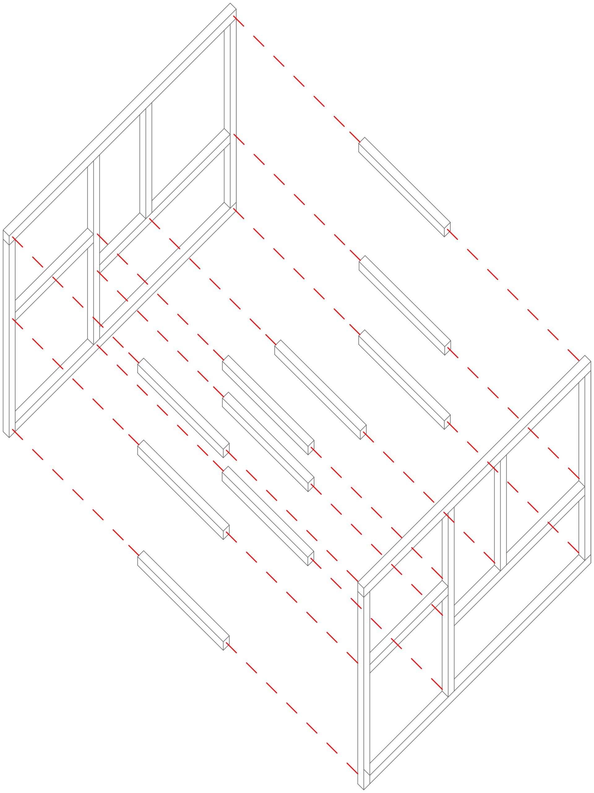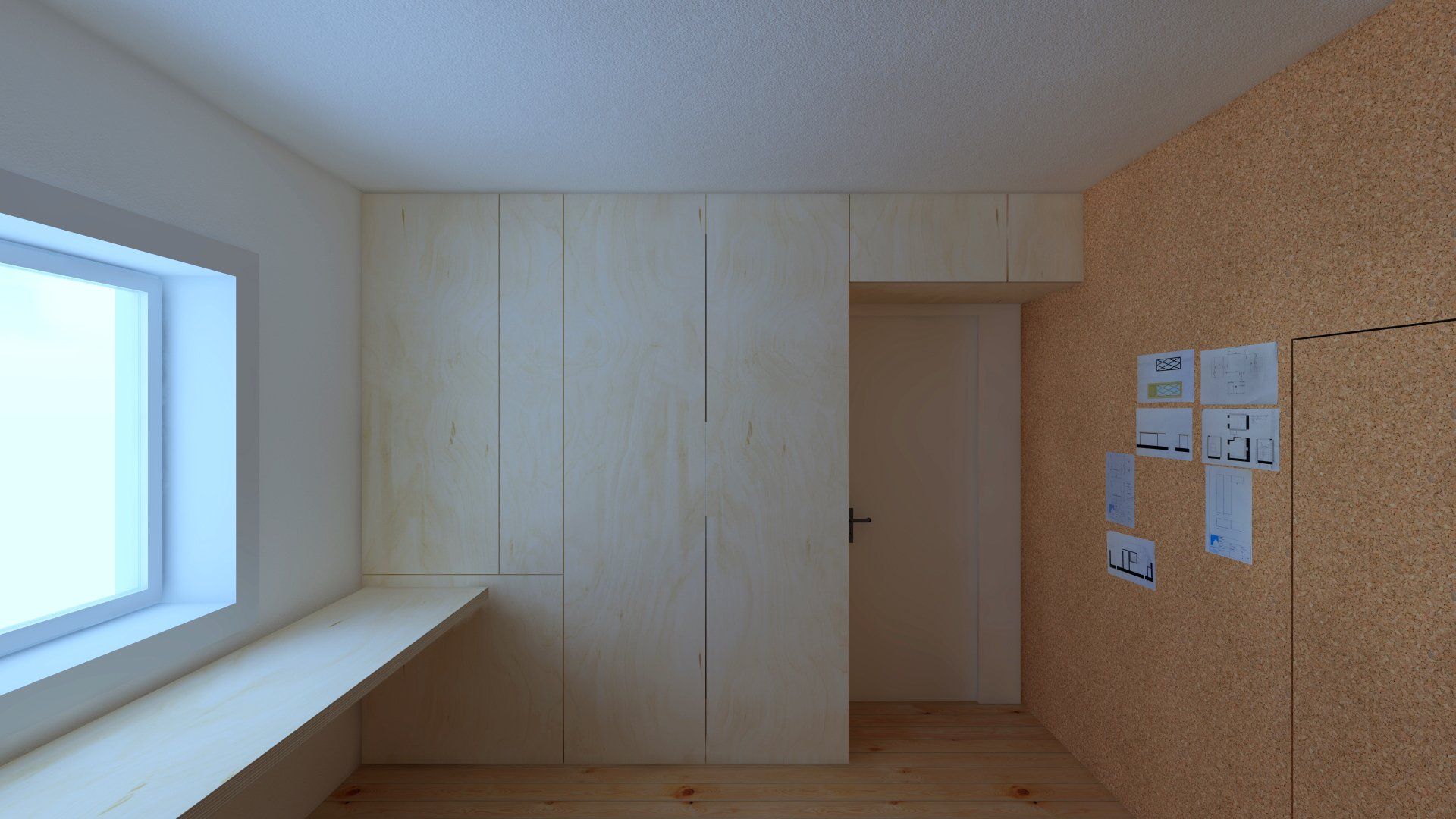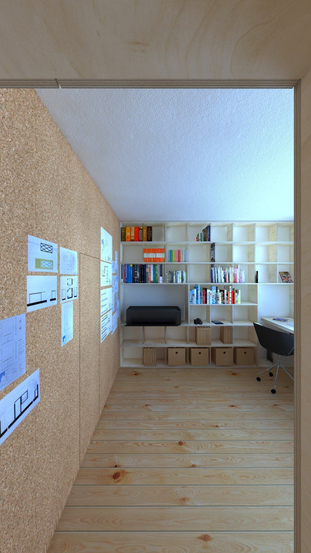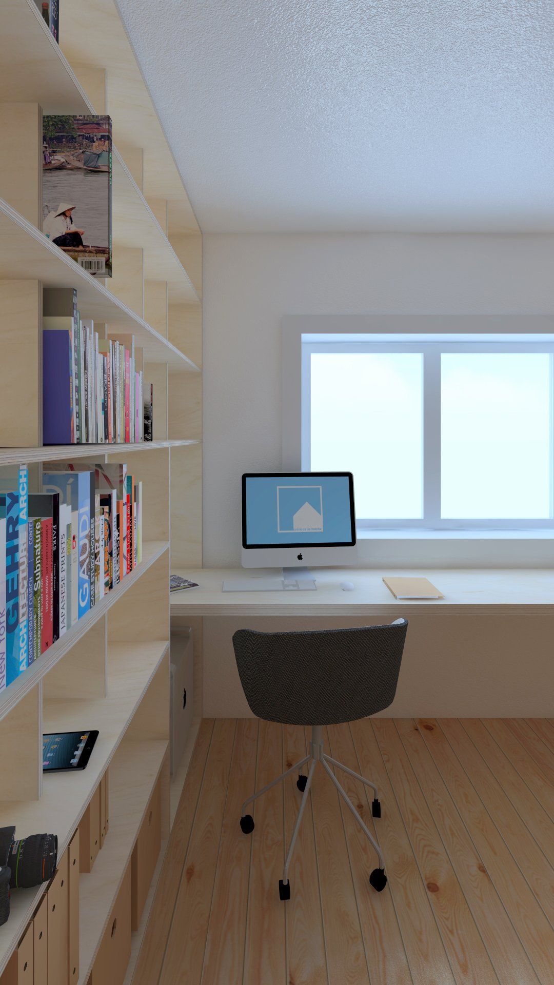 São desenhados os moveis necessários para o escritório - uma estante/biblioteca, uma mesa de trabalho com armazenamento – sem esquecer também um móvel que permita que o armazém continue, mas agora de forma organizada.