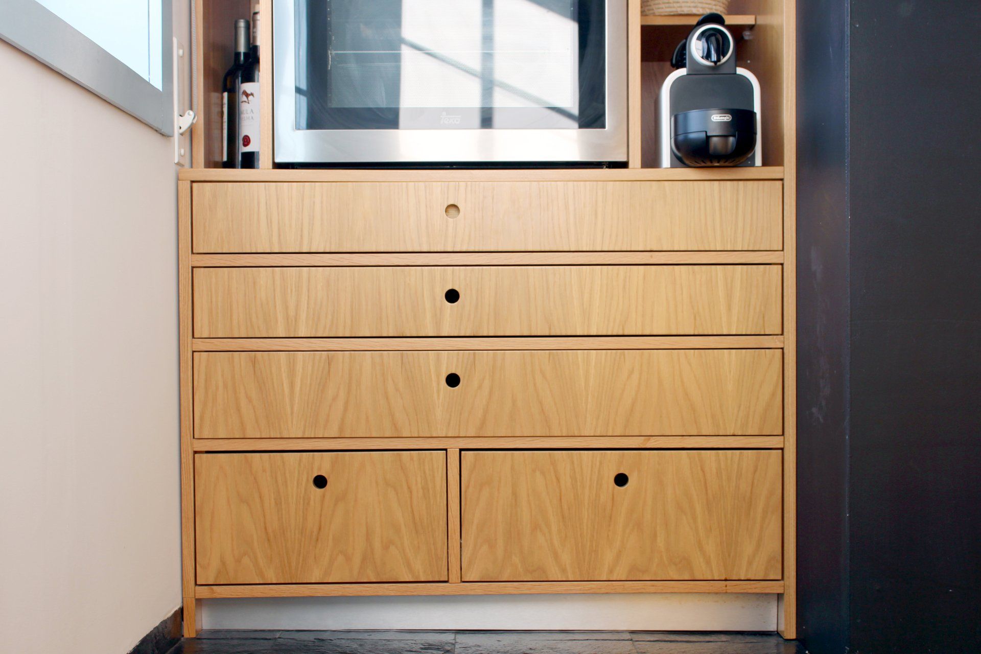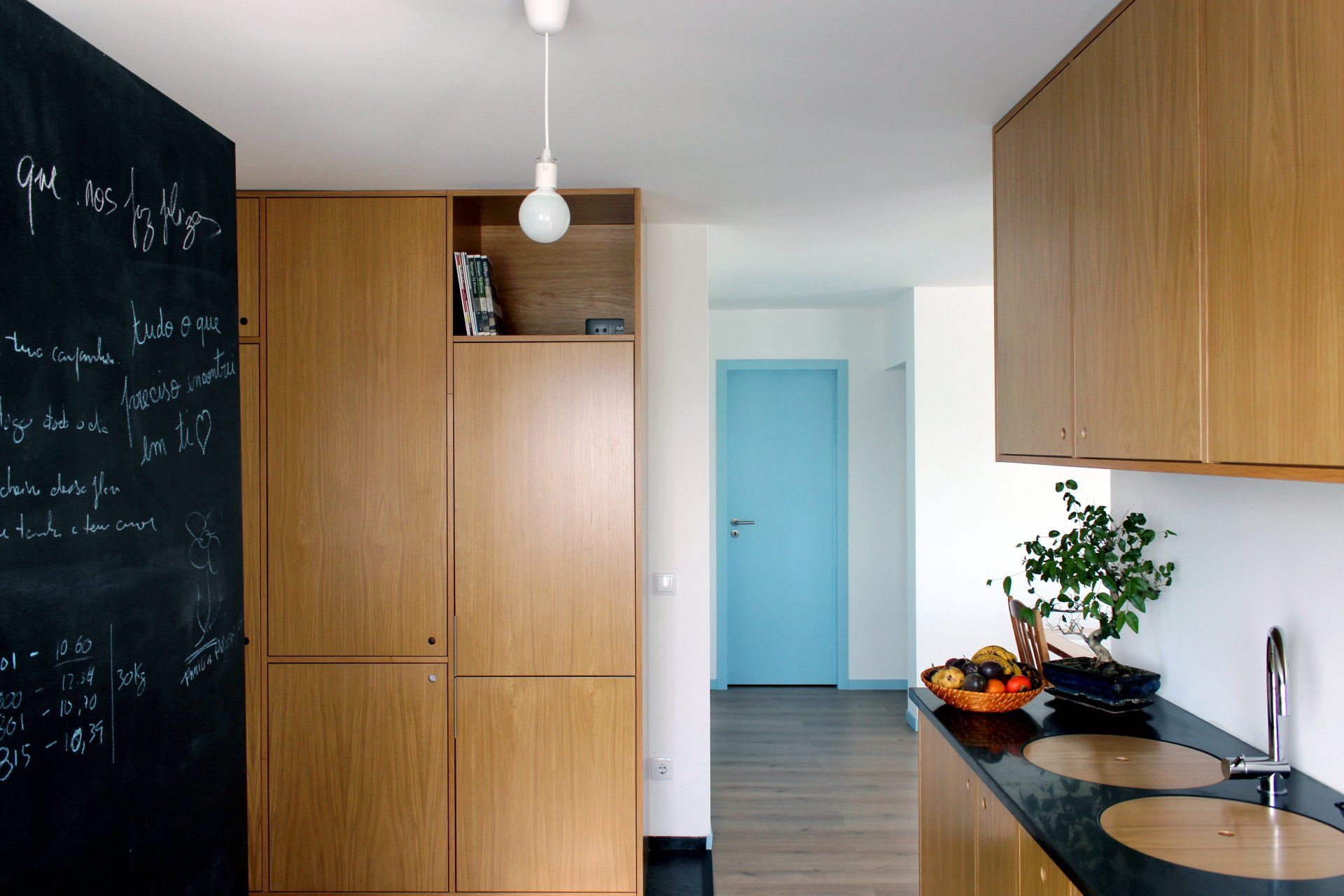 Na continuação da renovação daquela que será a “primeira casa” de um jovem casal, existiu também a necessidade de desenhar o mobiliário da cozinha. Convictos de que cozinhar é mais do que uma necessidade, e que a comida pode marcar momentos, pretendiam uma cozinha funcional mas acolhedora.