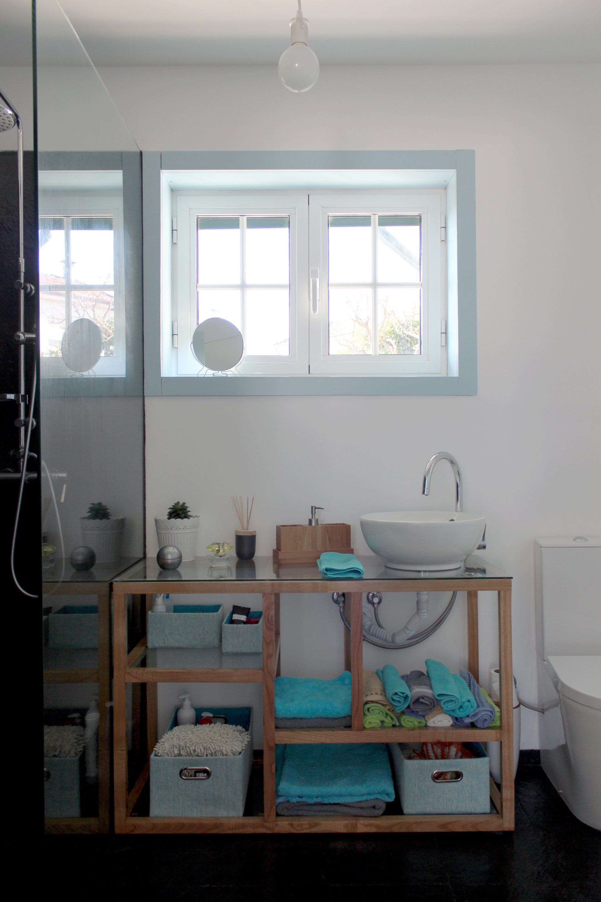 nu é um móvel de quarto de banho que se pretende leve para que não preencha o pequeno espaço que vai ocupar.
