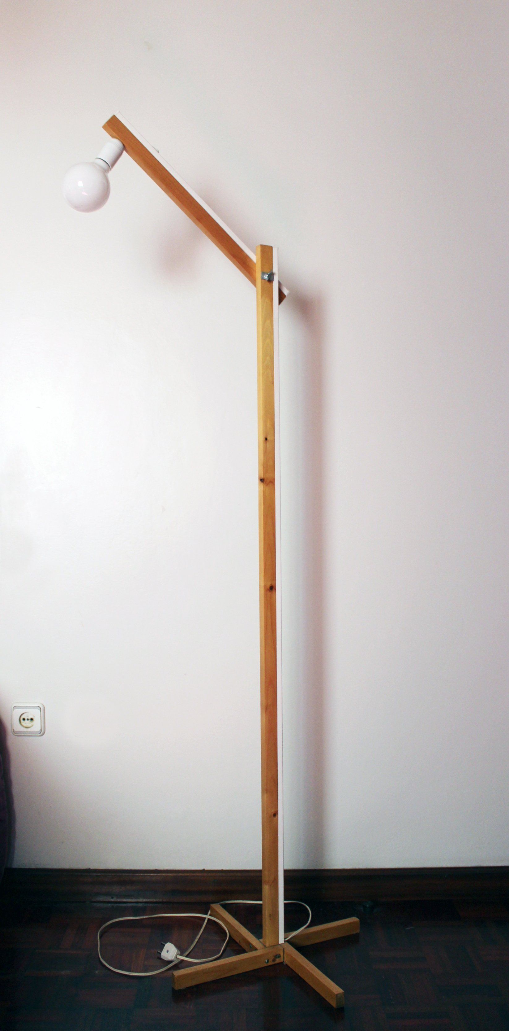 Ainda enquanto estudante, a necessidade de ter um candeeiro levou-me a arregaçar as mangas e por mãos-á-obra, por gosto e vontade de saber mais. Umas quantas ripas de madeira, calhas técnicas, fios, serras e lixas – entre outros materiais e ferramentas – mais um punhado de desenhos e experiências, construíram este candeeiro de pé.