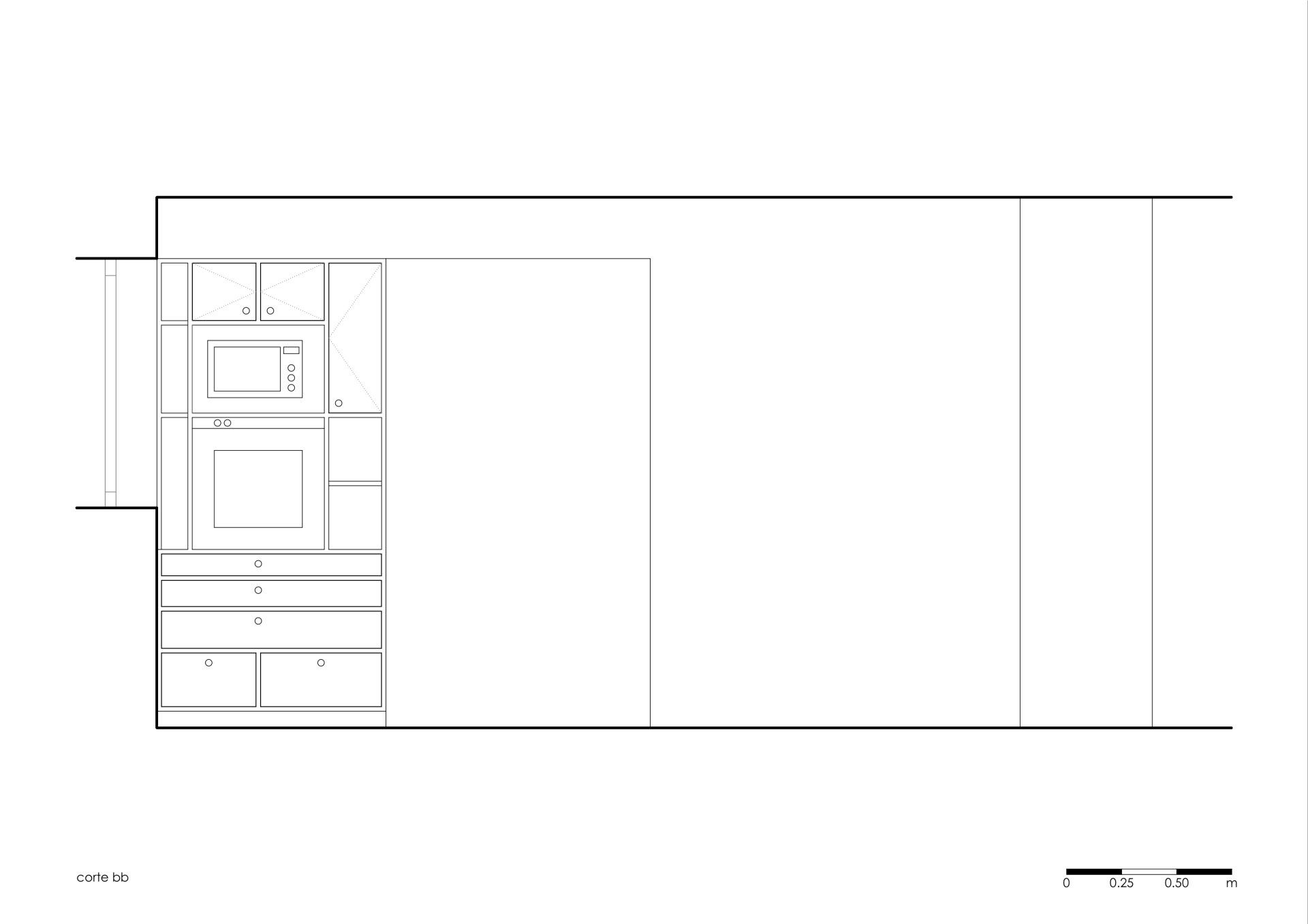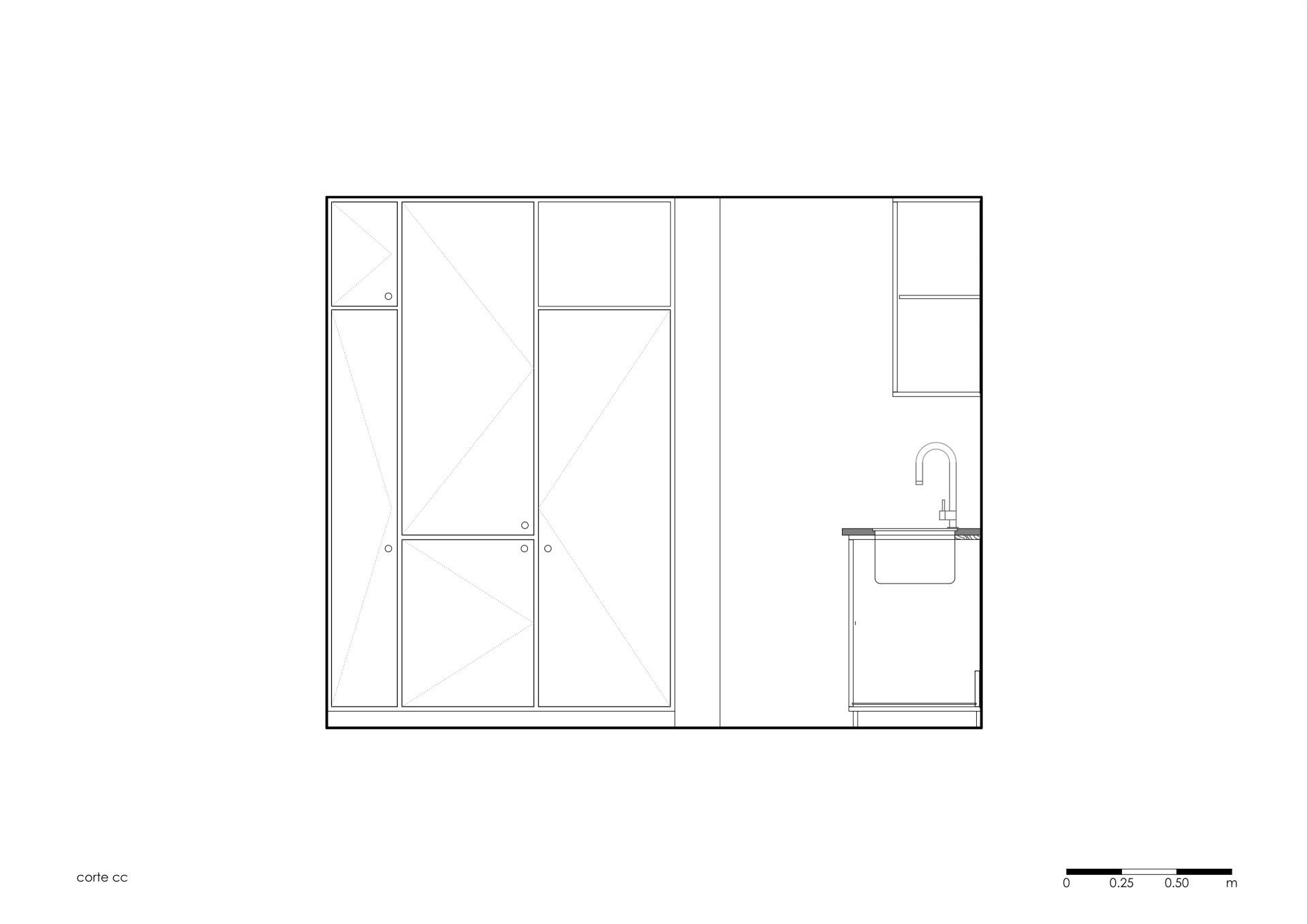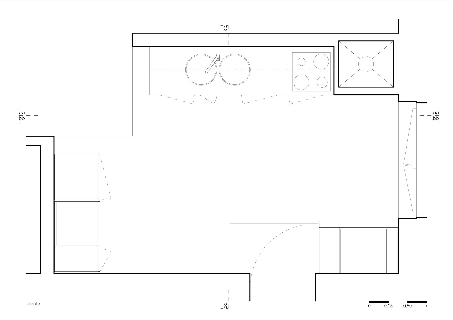 a transformação é essencialmente conseguida pela construção de uma parede que separa os dois pisos e a demolição de duas paredes que libertam o espaço social. a existência de um terraço motivou a que uma janela desse lugar a uma porta, fazendo do terraço uma extensão do espaço social interior, redefinindo a sua relação com o exterior.