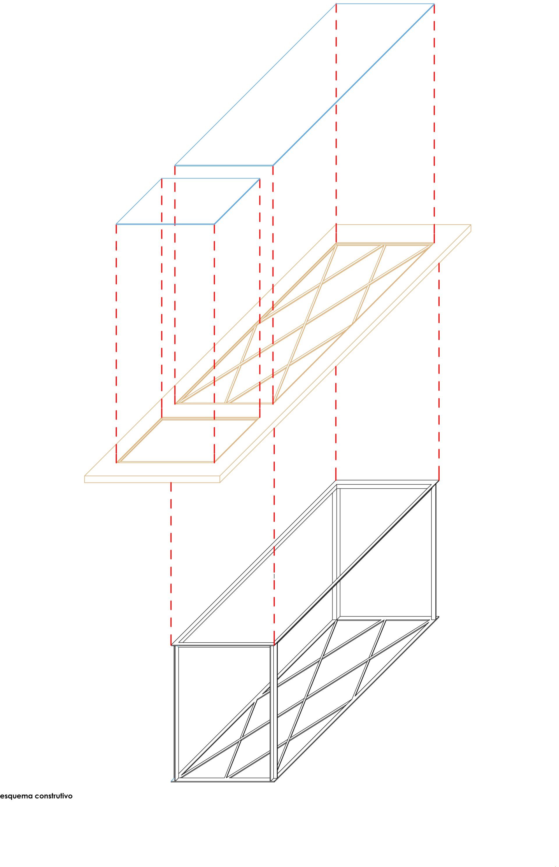 Partindo do limite máximo de construção e com a premissa de utilizar a construção preexistente, a casa constrói-se pela união de dois volumes.