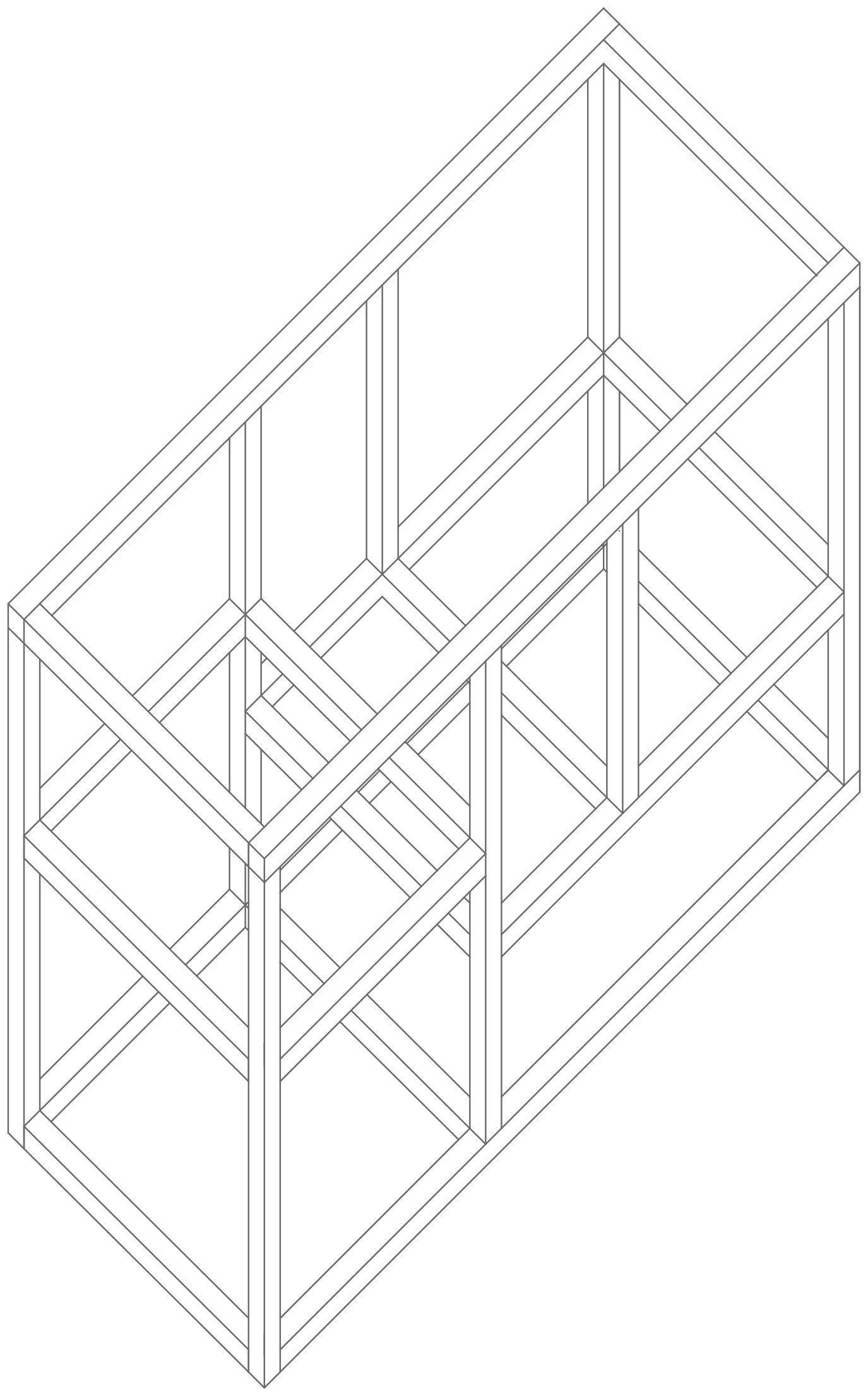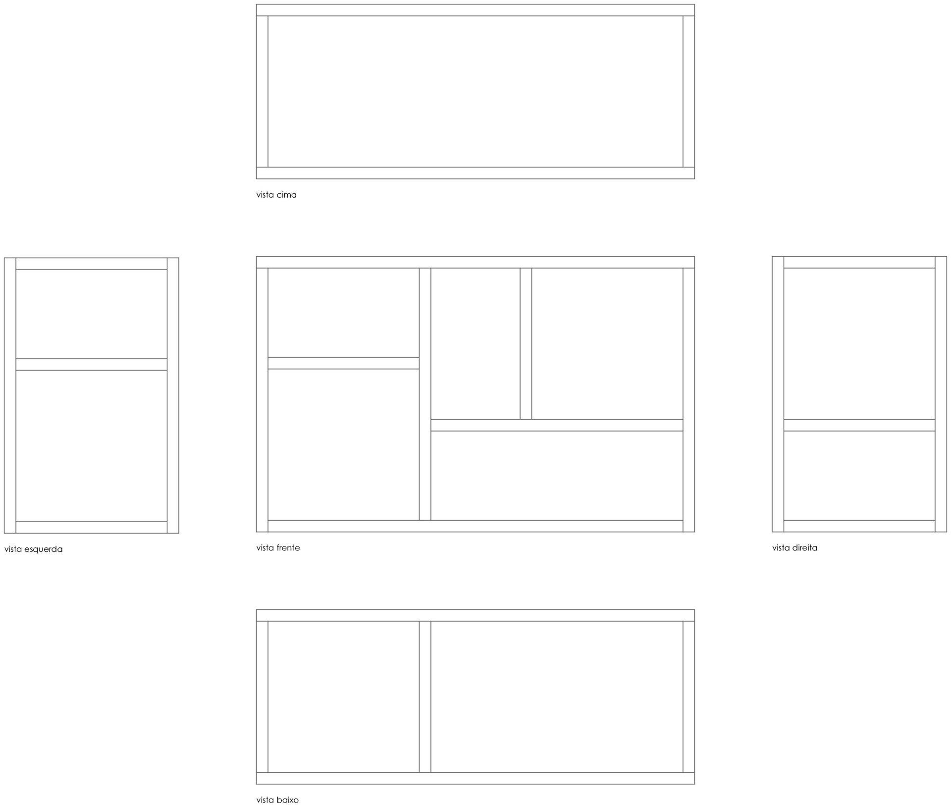 uma estrutura em madeira inspirada nas geometrias simples e estáticas da obra de Piet Mondrian criam um móvel de planos puros e ortogonais.